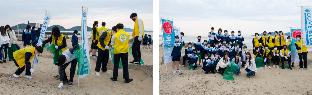高校生と「ばってん少女隊」による宗像市海岸清掃活動