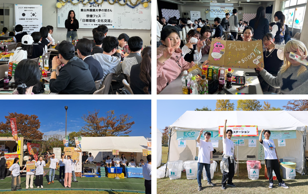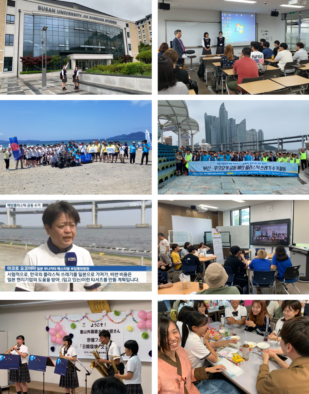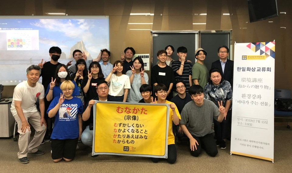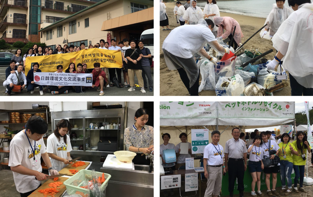 2017年より釜山外国語大学と協定を結び、日韓の学生が共同で環境を学び、相互の文化交流を目的とした「日韓国際交流海洋プラリサイクル事業」を行っています。この地域は古代より大陸文化の拠点として発展してきた歴史があります。だからこそこの地域で海峡を挟んだ隣国どうしの若者が共に環境活動を通した交流を行い、国際感覚と友情を育む事業が必要であると考えます。宗像フェス会場内のエコステーションは日韓交流学生が中心に運営しています。温かいご支援・ご協力をお願い致します。